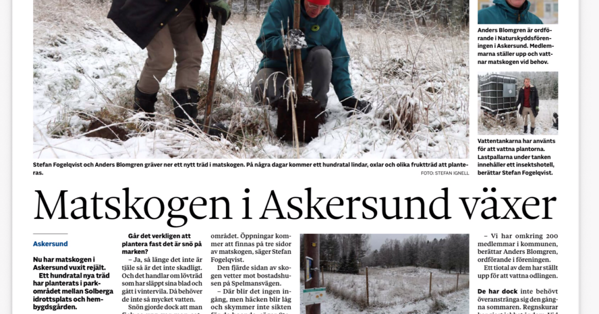 Den 19 november var vi på plats i Matskog Askersund för årets sista plantering. Stefan Fogelqvist planterade bland annat oxel, lind och hagtorn. NA var också med och gjorde ett reportage som kan läsas på deras hemsida. Ett filmteam från Boliden Zinkgruvan var också på plats och dokumenterade arbete. Nu får vi vänta till i […]